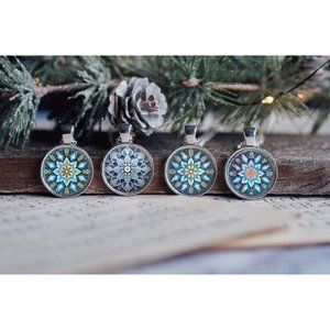 Icy Blue Snowflake Stained Glass Art Christmas Silver Dangle Earrings Gift Idea
