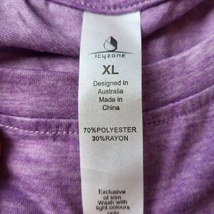 Icyzone muscle tank bundle, both size XL, both 70% polyester 30% rayon, both have suits at both sides at hem, 1 purple, 1 grey, very thin airy material, excellent condition.