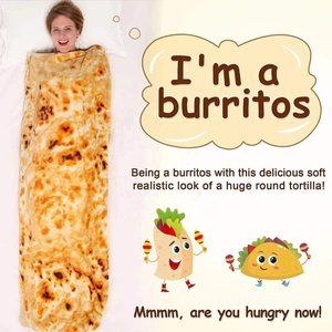 "It is not just a blanket, but an realistic burritos tortilla novelty blanket that you have never seen before, simply lying in this blanket, wrapping yourself up like a tortilla, when neighbors see you wrapping it, they will be jealous and want to be a burritos.