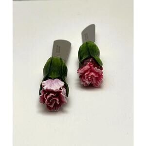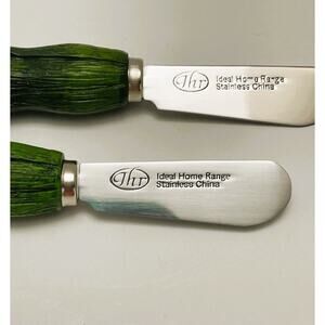 Brand new, Ideal Home Range Set of (2) Stainless Steele Speaders-Elizabethan Garden. Set of (2) speaders features floral handles-carnations w/greenery made out of resin, beautifully designed with bright colors. Made in Germany. Measures 4 3/4" long, 3/4" across blade. Hand wash only. Speaders are new, never used. Comes from a smoke free, pet free home.