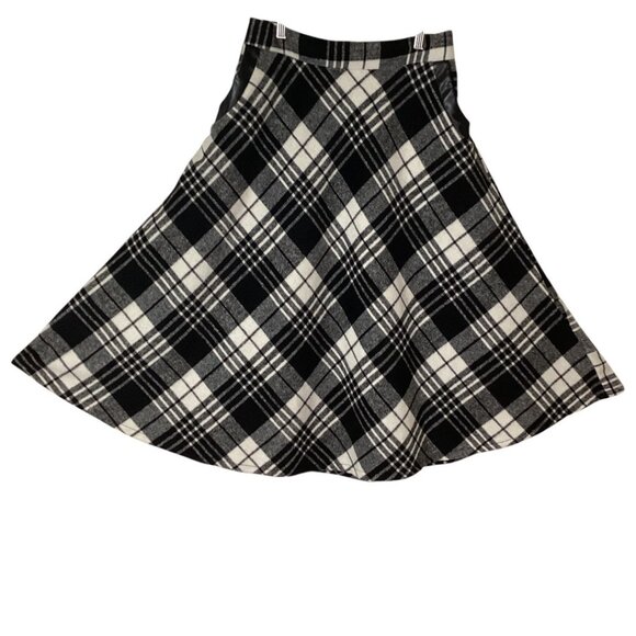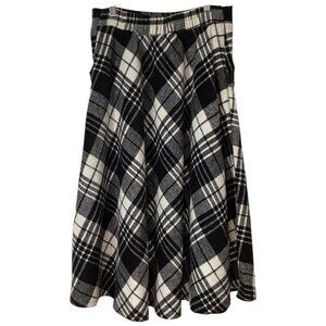 IdealSanXun Black & White Plaid Wool Blend A-Line Skirt With Pockets Size Medium