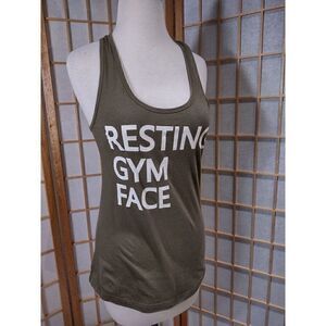 Classic racerback tank from Ideal T. Size medium. Reads Resting Gym Face. Some damage to tag. 60% cotton, 40% polyester. Machine washable. Made in Nicuragua. Excellent condition. Nonsmoking home.
