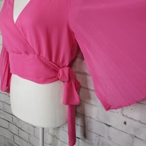 Idem Ditto Hot Pink Sheer Wrap Top Size Small