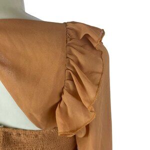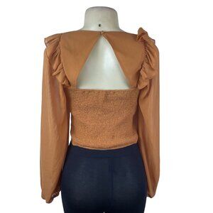 Idem Ditto Women’s Orange Polyester Ruched Long Sleeve Crop Top Size M