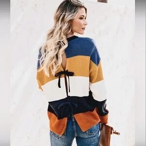 Idem ditto Striped Open Tie Back Sweater Size S/M