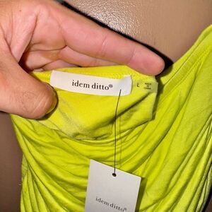 Idem Ditto Women's After Daylight One Shoulder Top in a vibrant Sunny Lime color. This stylish top is new with tags (NWT) and comes in size Large. Perfect for adding a pop of color to your wardrobe! The unique one-shoulder design makes it a standout piece for any occasion. Don't miss out on this trendy addition to your closet!