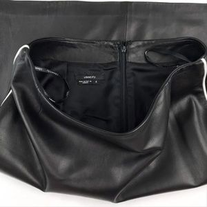 Midi-length, black leather skirt by Identify from Saks Fifth Ave circa 1990s.