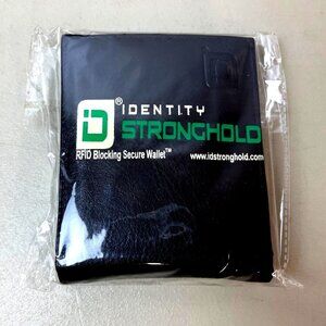 Identity Men's Black Leather Stronghold RFID Blocking Secure Wallet Sz S -NWT