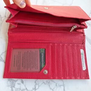 Identity stronghold RFID blocking wallet clutch pebbled leather red NEW womens