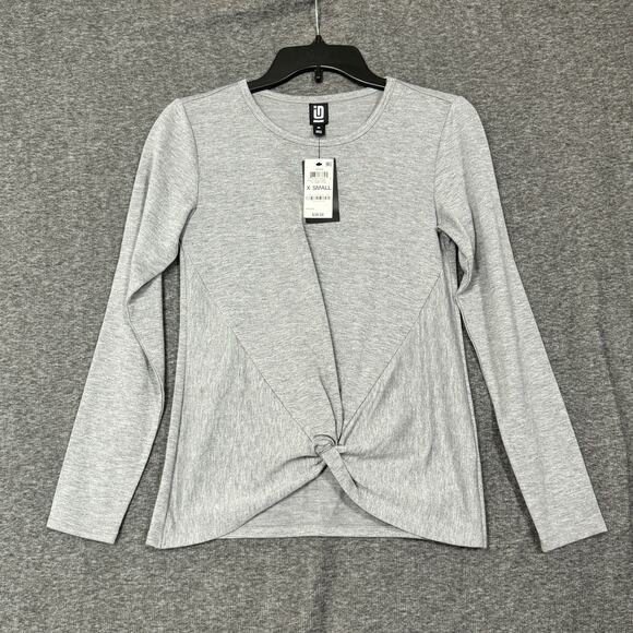 Ideology Activewear Womens Top Size XS Gray Long Sleeve Crew Neck Tie Waistline