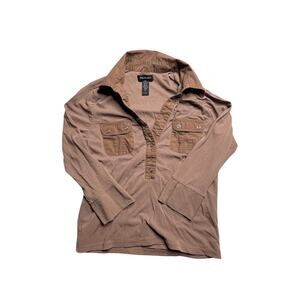 Ideology Brown Quarter Button Top – Women’s Size Large, 100% Nylon
