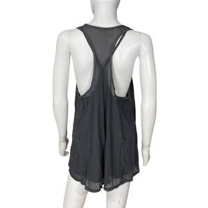 Ideology Gray Tank Cami Sheer Mesh Inset Top