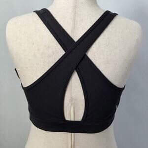 NWT. Deep Charcoal Sports Bra for Women Various Sizes. Pull on, criss cross back, cut out middle back, reflective brand logo back right side, removable padding, as per tag "rapidry, flex stretch, flat seams, medium impact".