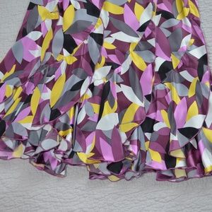 Beautiful 100% silk skirt with a feminine ruffled hem and vibrant shades of purple! Perfect for Date Night or an evening out!