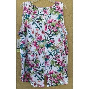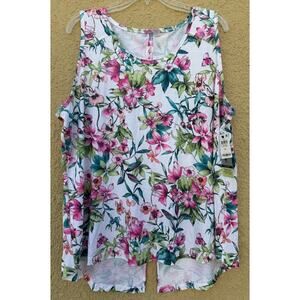 A split back hem enhances the comfy coverage of this sleek plus size Ideology tank top in a vibrant floral print.