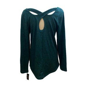 Ideology Women Blouse French Terry Long Sleeve Printed Cutout-Back Tee Green S