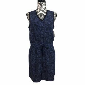 New With Tags Ideology Womens Blue Black Snake Print Drawstring Waist Dress Size Large