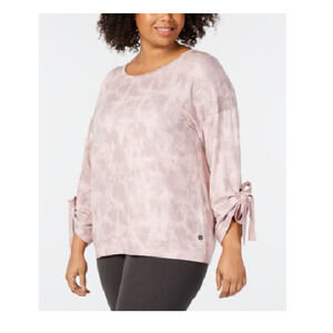 Ideology Womens Plus 3X Tie-Dye Crewneck Sweatshirt Tie Sleeve Blush Pink New