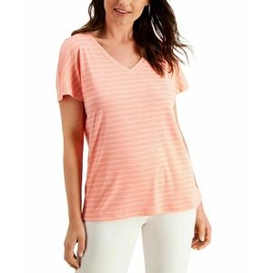 Ideology Women's Shadow-Striped Short Sleeve V-Neck T-Shirts Top Pink XS, NWT