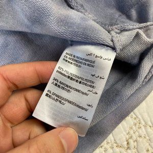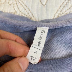 Ideology plus purple-blue tie dye sweatshirt, with 3/4 length sleeves that have a tie detail.