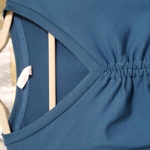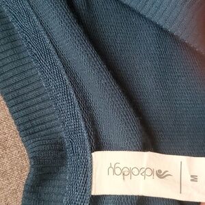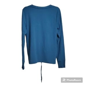 Ideology turquoise blue green shirt cinch front can become crop like shirt long sleeve v-neck thumb hole at wrist comfy lighterweight flexible pliable soft