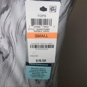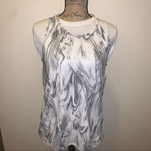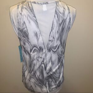 Ideology Marble Swirl Performance Top. Condition is "New with tags". Super stylish and lightweight performance top. The material on the body is: 88% polyester and 12% spandex. Inset is 80% polyester and 20% spandex.
