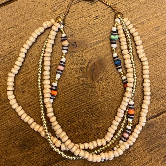 This bracelet has and adjustable chain. Made in Uganda with paper, vinyl, and glass beads. Adjusts to fit many wrists.