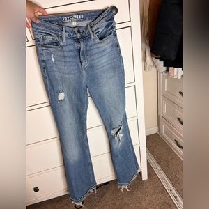 These jeans haven't been worn a lot and are in great condition. I love these jeans but will no longer wear them.