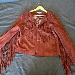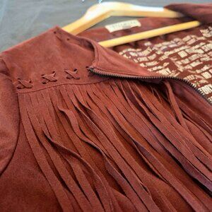 Idyllwind Maranda Lambert Faux Suede Fringe Jacket Rust Brown Size Large