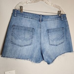 Idyllwind braided button fly stretch denim shorts. Plus Size 16