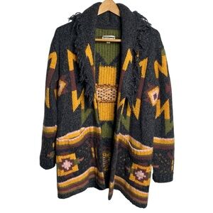 Idylwind by Miranda Lambert. Luxuriously, soft and cozy long open western, Santa Fe southwestern, rodeo Queen style cardigan sweater. Gorgeous fringe around collar and front. Size extra small and in very good preowned condition. No defects to report.