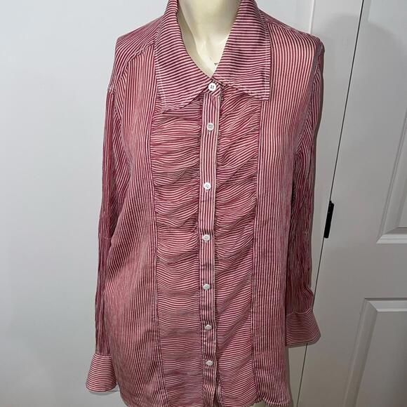I.e. women’s silk blouse size 1X red and white striped button down shirt