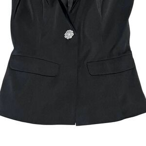Ieena By Mac Duggal Black Satin Formal Blazer Plunging Neckline Crystal Button