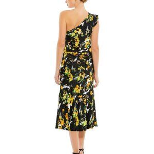 Ieena For Mac Duggal 55630 One Shoulder Black Floral Dress Size 12 MSRP $348