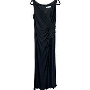 Ieena For Mac Duggal Black Ruched V-Neck Jersey Gown Size 8 $298