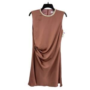 Ieena For Mac Duggal Mauve Satin Cocktail Dress Rhinestone Collar Sz 8 $348 MSRP