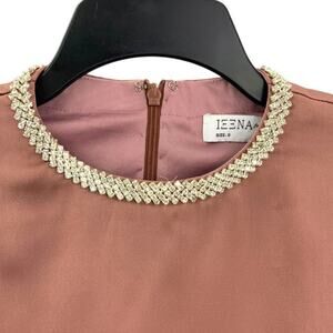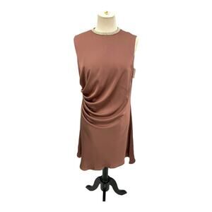 Ieena For Mac Duggal Mauve Satin Cocktail Dress Rhinestone Collar Size 8; From Nordstrom; Charmeuse fabric (100% polyester). Fully lined through body. High neckline. Sleeveless. Fitted waistline. Rhinestone trimmed collar. Concealed back zipper. Very light pulls as shown.
