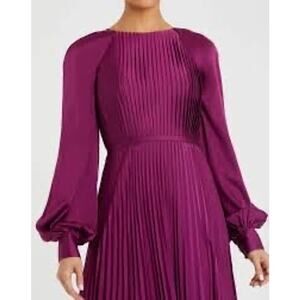 Ieena For Mac Duggal Berry Purple Pleated High Neck Raglan Long Sleeve Side Slit Gown Size 14
