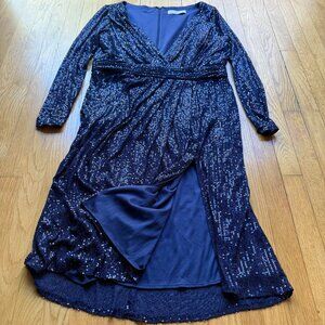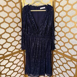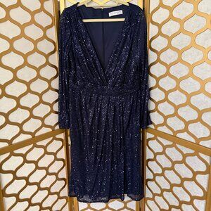 Ieena For Mac Duggal Size 16 Navy Sequin Long Sleeve Cocktail Faux Wrap Dress