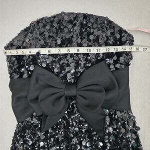 Ieena Mac Duggal Black Strapless Sequin Evening Gown With Bow Sz 4 NWT