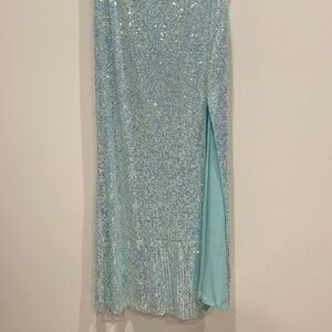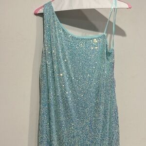 Ieena Mac Duggal Ice Blue One-Shoulder Sequin Gown Size 14 plus $398