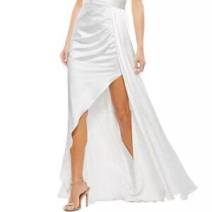 Ieena Mac Duggal White One-Shoulder Faux Wrap Satin Gown