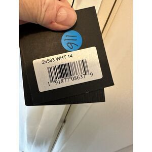 Experience elegance with the Ieena Mac Duggal scoop neck sleeveless ball gown. Tailored for a regular fit, this size 14 maxi dress exudes sophistication with its pristine white hue, perfect for high-society events or as a stunning wedding dress option. The high slit adds a touch of allure, allowing for a graceful and confident stride.