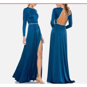 Ieena Mac Duggal Women's 4 Evening Gown Sapphire Blue Crystal Trim 26524 SAP NWT
