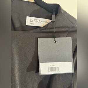 Elegant black dress by Lena featuring long sleeves and stylish fringe detailing. Perfect for any occasion.