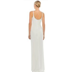 Create vision of sophistication when you stand out in this Ieena Duggal 26583 creation. Tailored in a luxurious crepe silhouette, this sleeveless gown flaunts jewels trimming the scoop neckline and deep scoop back. Revealing a sexy side slit, the sheath skirt cascades amazingly down to a full-length hem with a trailing sweep train. Mesmerize everyone with your elegant flair in this Ieena Duggal masterpiece. Exquisite attention to detail is the hallmark of Mac Duggal dresses. Mac Duggal dresses encapsulate the very essence of the women who wear them, reflecting their confidence, feminine power, and inner beauty.