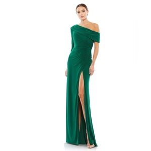 Ieena for Mac Duggal Asymmetric Jersey Gown in green size: 6