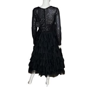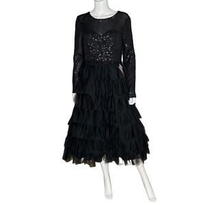 Ieena for Mac Duggal Black Long Sleeve Ruffle Tiered Midi Dress Women’s Sz 8
