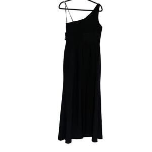 Ieena for Mac Duggal Crepe Thigh High Slit One Shoulder Evening Gown Black Sz 8