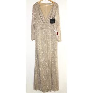 Ieena for Mac Duggal Dress Sequined Long Sleeve Evening Gown Maxi NWT 14